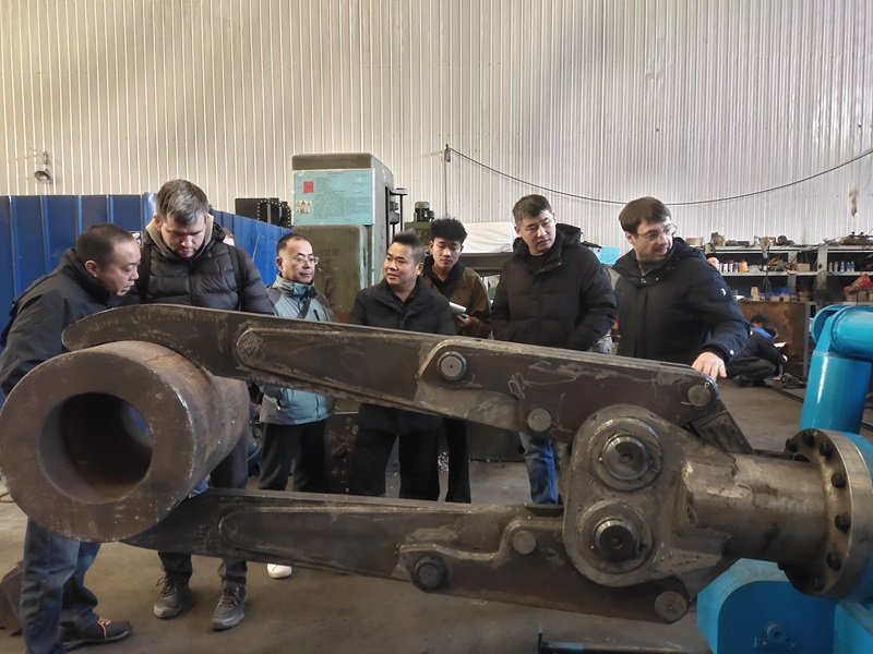 考察當日,公司高層對俄羅斯客戶的到來表示了熱烈歡迎,并安排專業技術團隊全程陪同講解。在生產車間,技術人員詳細介紹了鍛造操作機的設計理念、核心技術以及生產工藝,客戶們近距離觀看了設備的運行演示,對設備的高效穩定、精準操控以及人性化設計給予了高度評價。